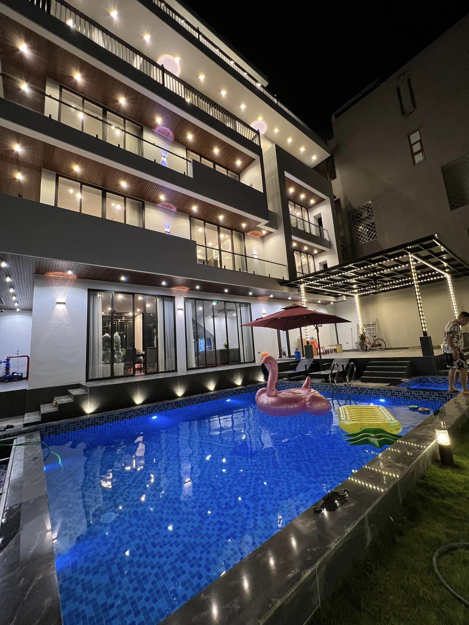 ✔️Khu vực BBQ ngoài trời siêu rộng ánh sáng lung linh, không gian rộng rãi thích hợp tổ chức tiệc sinh nhật hội họp, gala dinner.