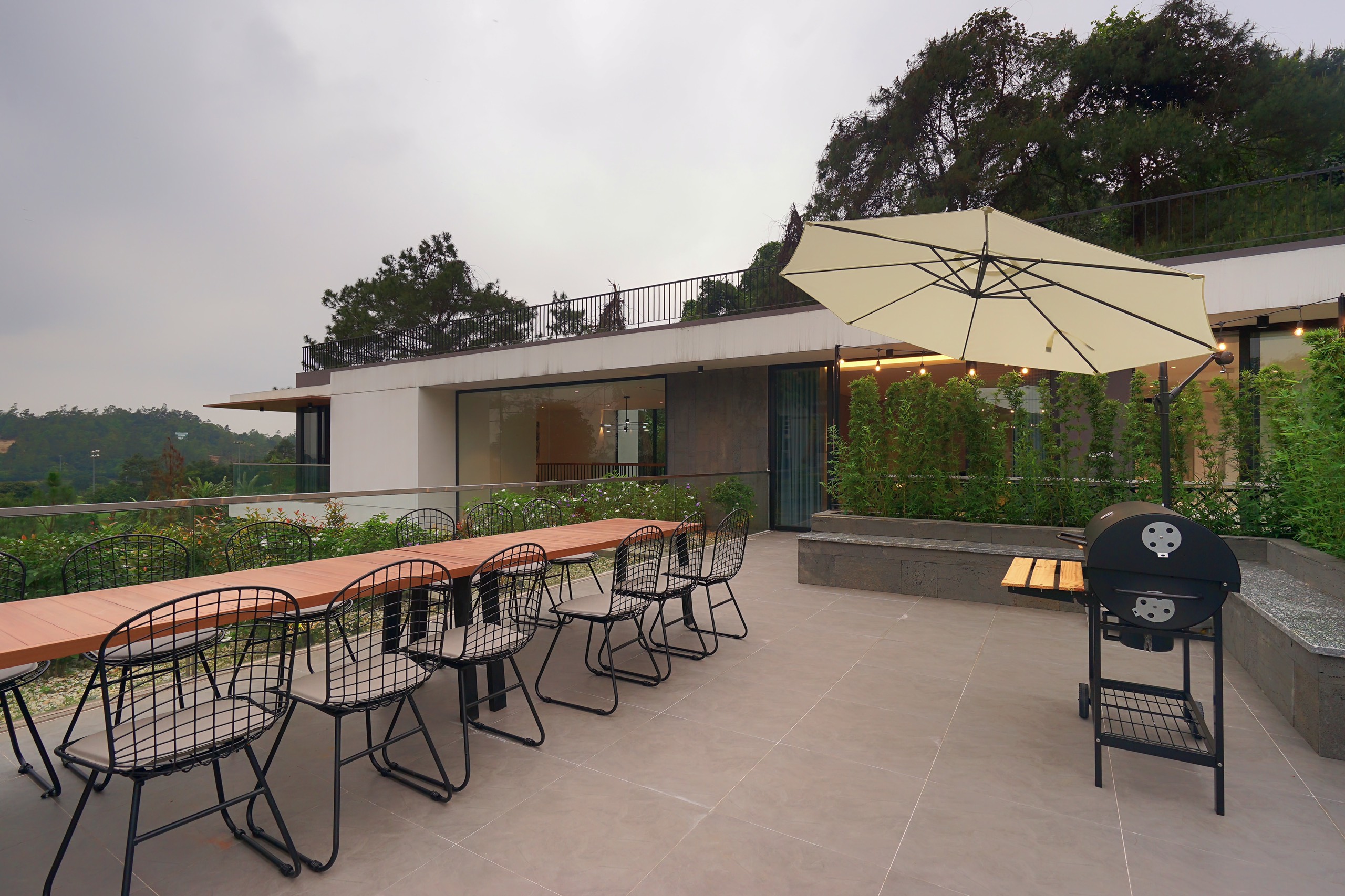 – Khu vực nước BBQ với bếp nướng và bàn ghế ăn ngoài trời.