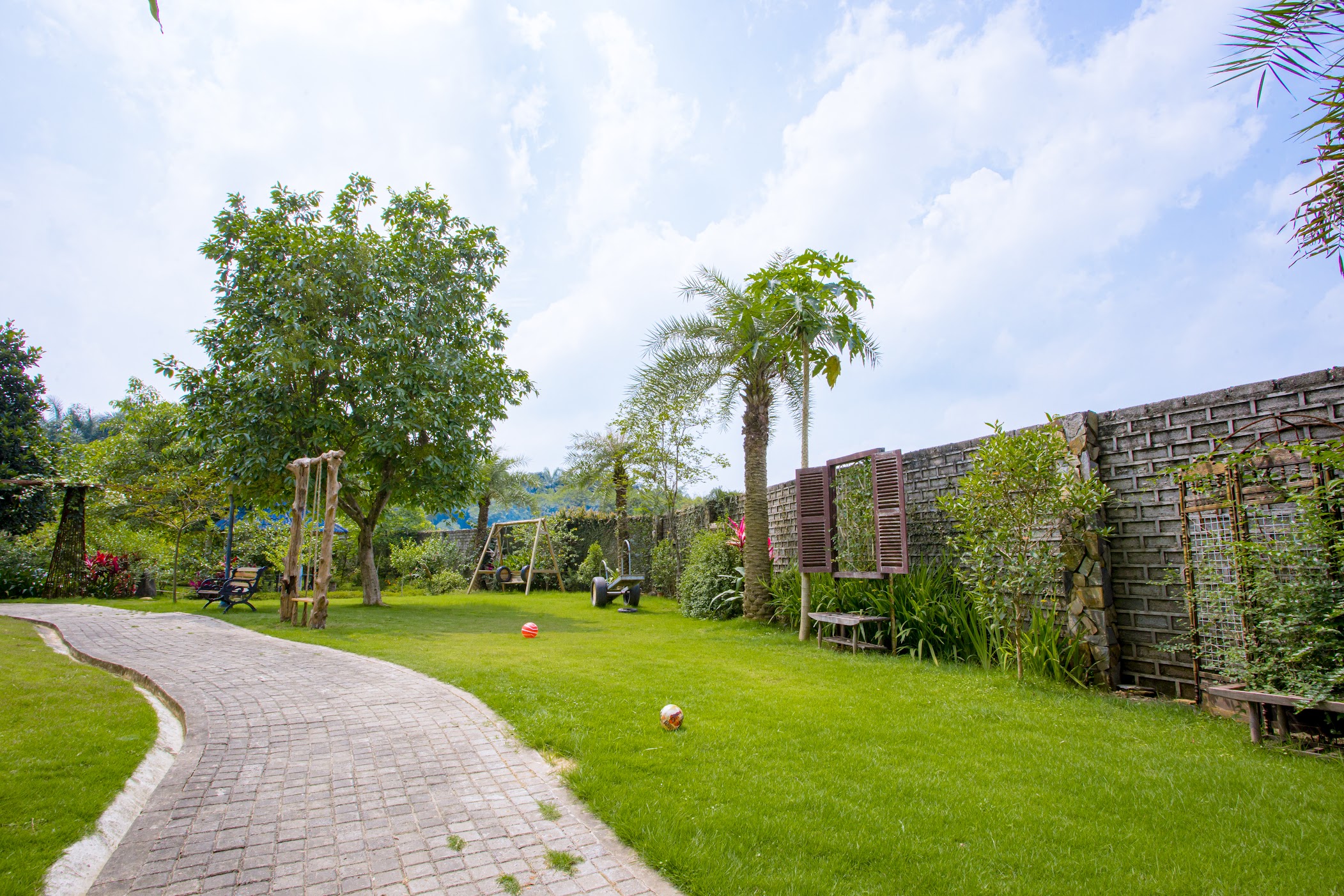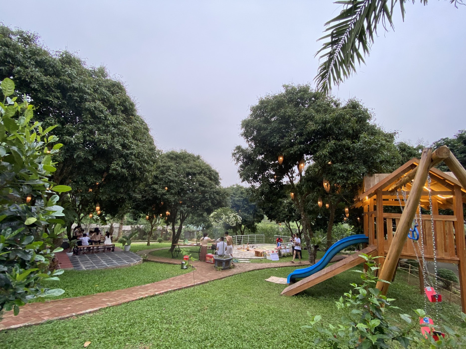 ♦️ Khu vui chơi cầu trượt, cầu khỉ, cầu mây, bóng rổ, hồ cá (khách tự chuẩn bị cần câu)