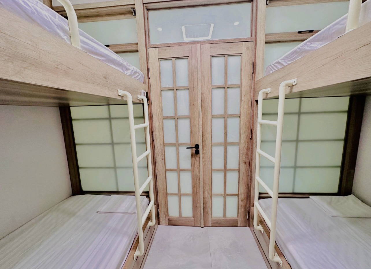 ☑ PPhòng ngủ 5: phòng giường tầng gồm: 4 giường 1.1m (2 tầng) – view bể bơi, sân vườn (Nvs chung ở Pkhach)