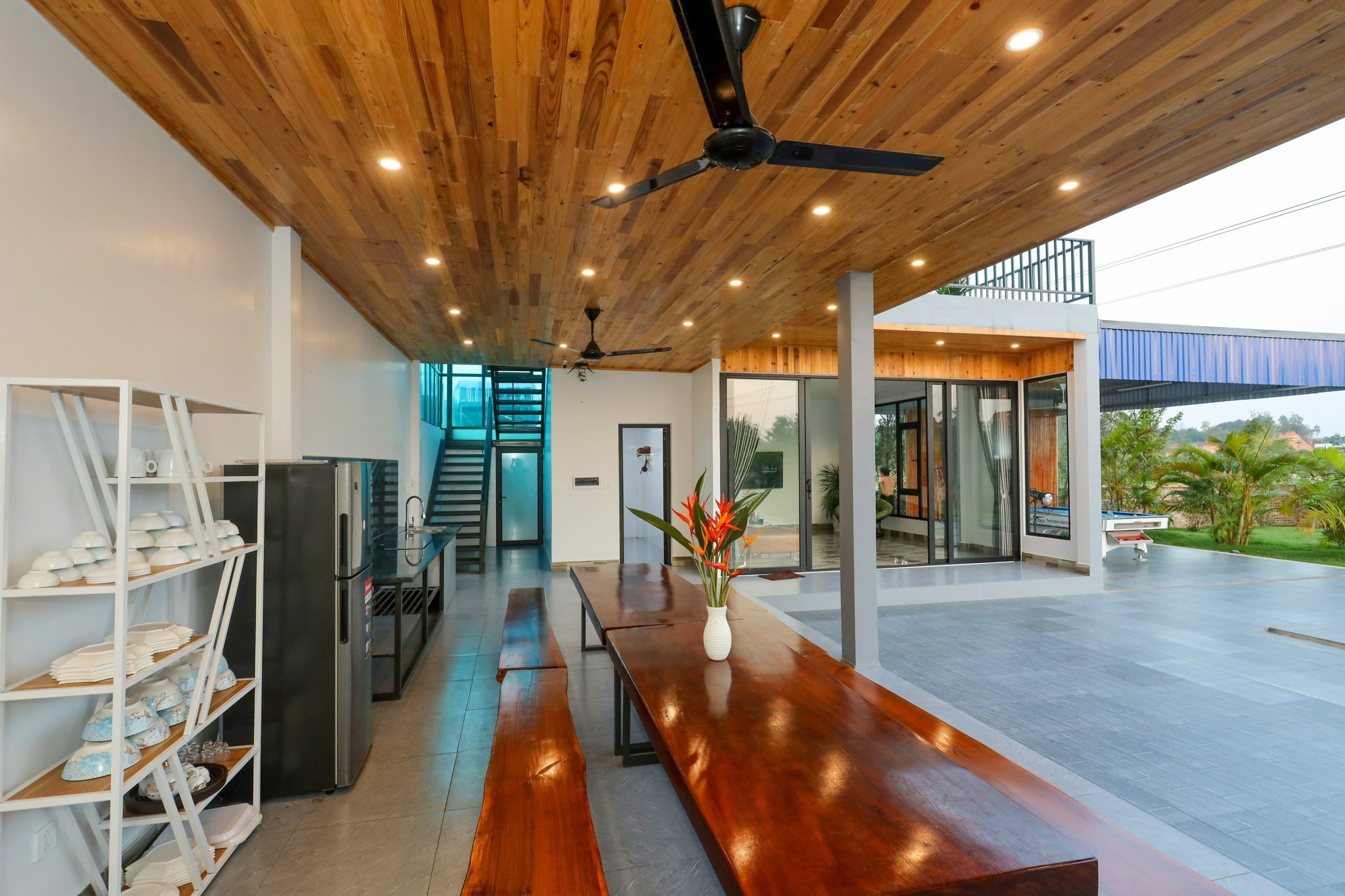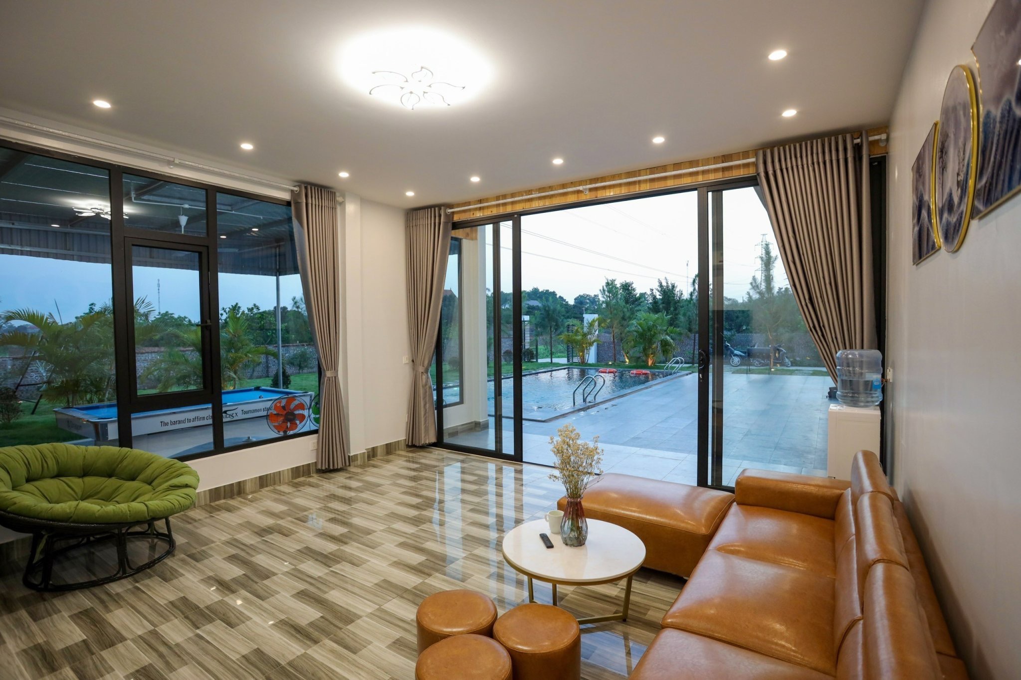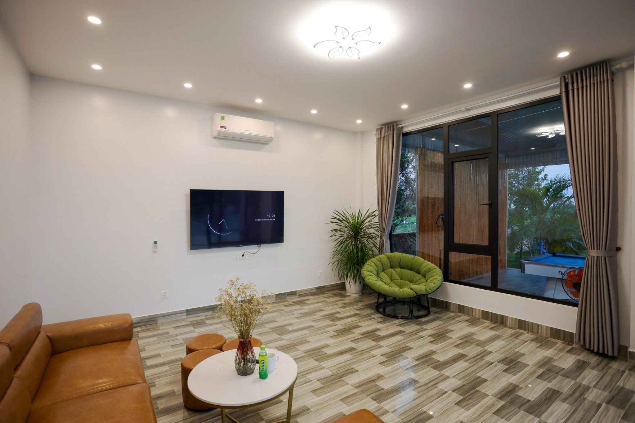 HLN VILLA 2 nằm trong khuôn viên rộng 1200m2, diện tích nhà 220m2. Có bể bơi riêng, view rừng núi. Có khu nướng BBQ, khu vực ăn ngoài trời