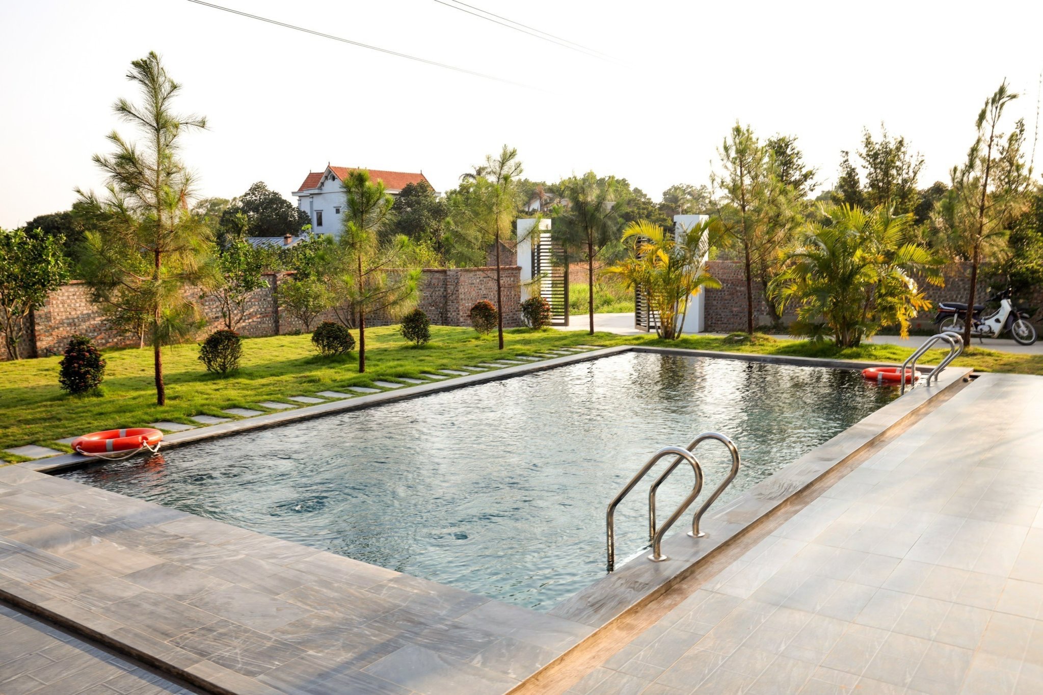 Bể bơi vô cực (10m x 5m, sâu 1.3-1.5m), hệ thống lọc nước an toàn, đảm bảo sức khoẻ