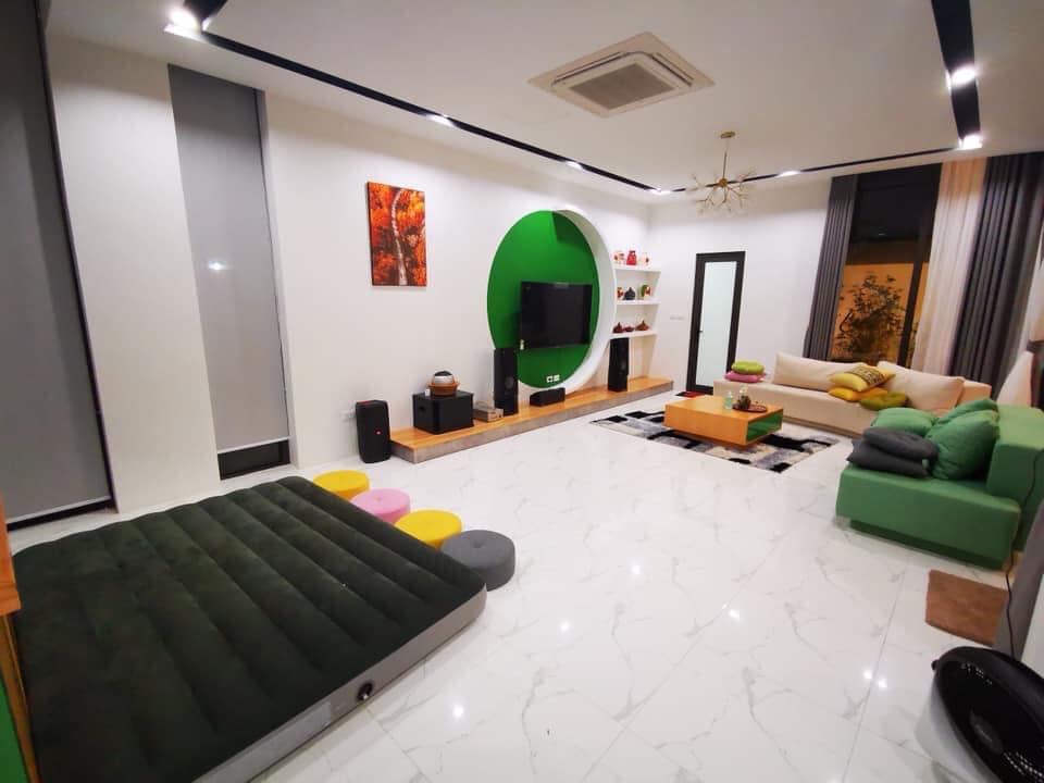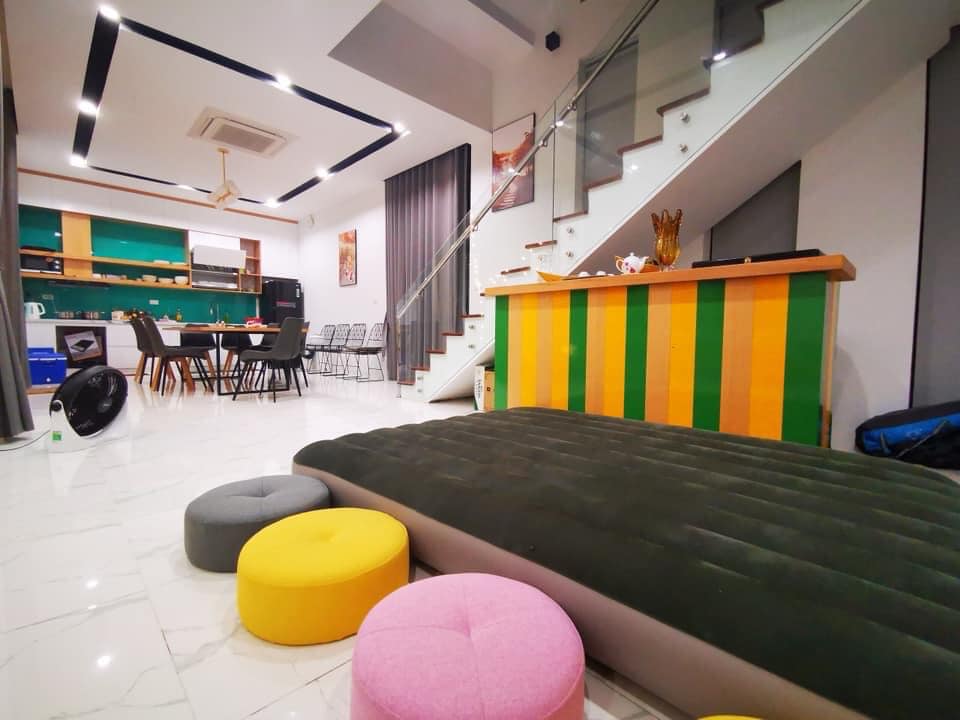 🔸 1 khách rộng 50m2 trang bị smart tivi kết nối loa kéo hát karaoke 🎤, có điều hoà
