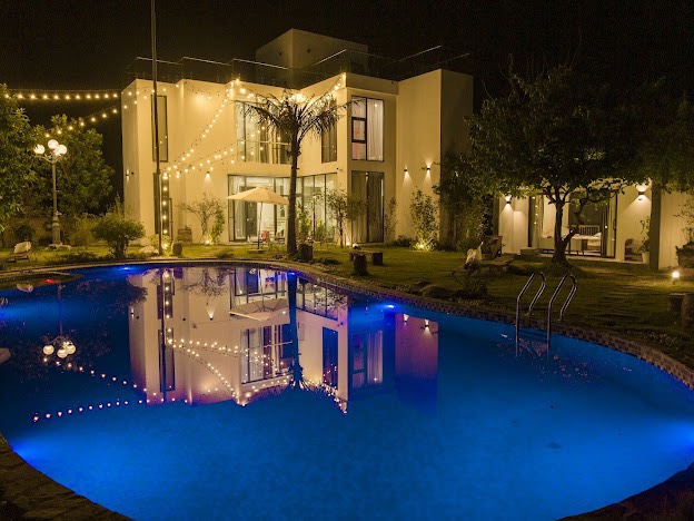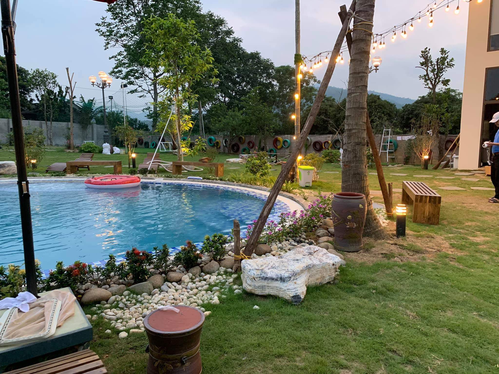 🔸 Khuôn viên : tiểu cảnh đồi tùng chụp ảnh, suối cá Koi, hầm rượu vang, sân bóng mini cỏ nhân tạo,