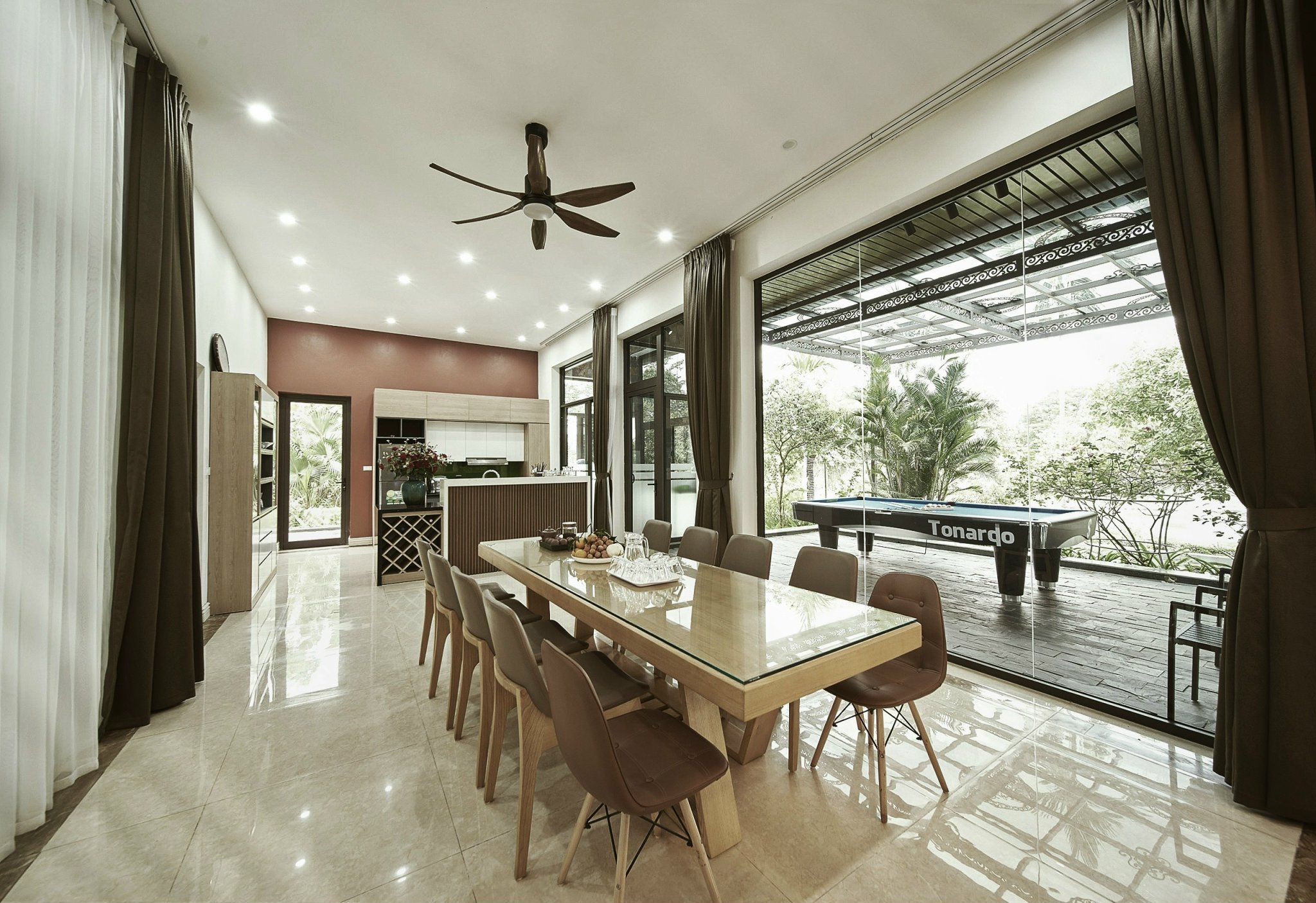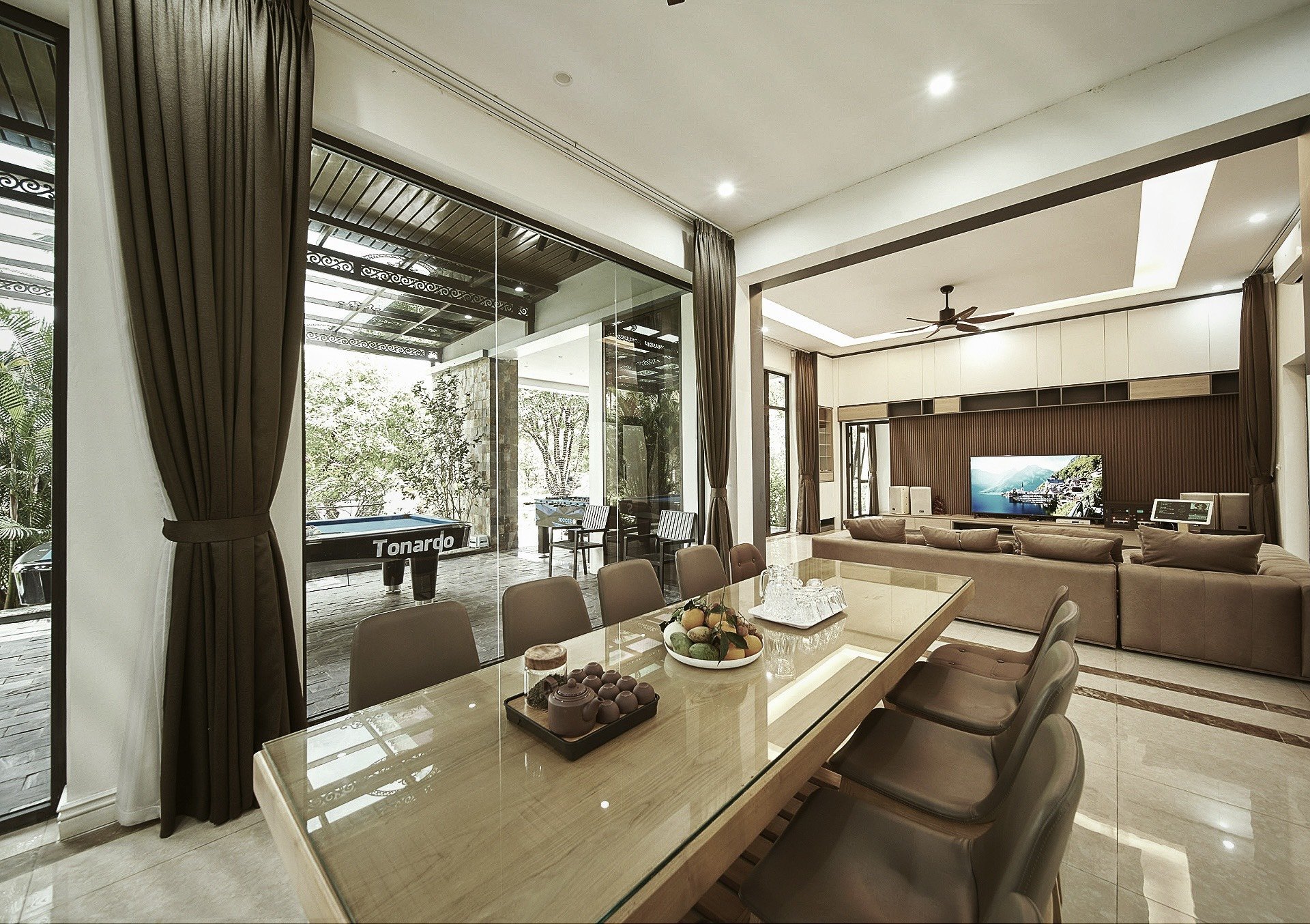 🌴 Phòng khách thông phòng ăn rộng 100m sảnh chơi trong nhà 50m