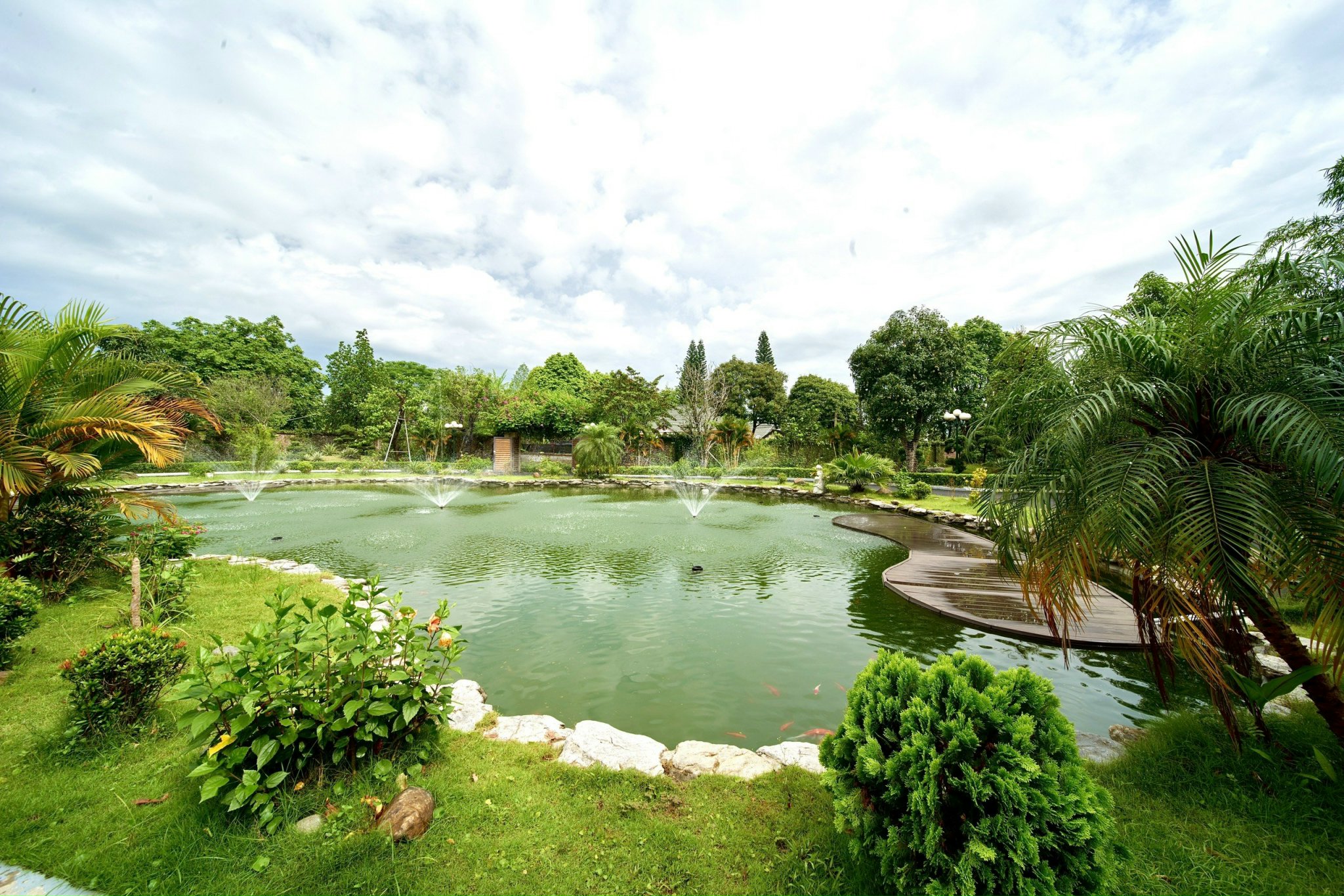 🌴 Khuôn viên 5200m, ao nhân tạo, khu vui chơi trẻ em: cầu trượt, mô hình hoạt động liên hoàn, nhà nhún.